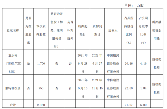 6月29日,伯特利(证券代码:603596)控股股东袁永彬、股东芜湖伯特利投资管理中心(有限合伙)向中国银河证券股份有限公司、中信建投证券股份